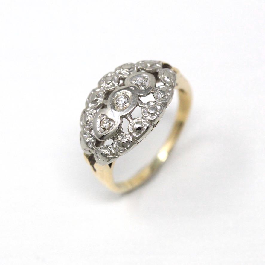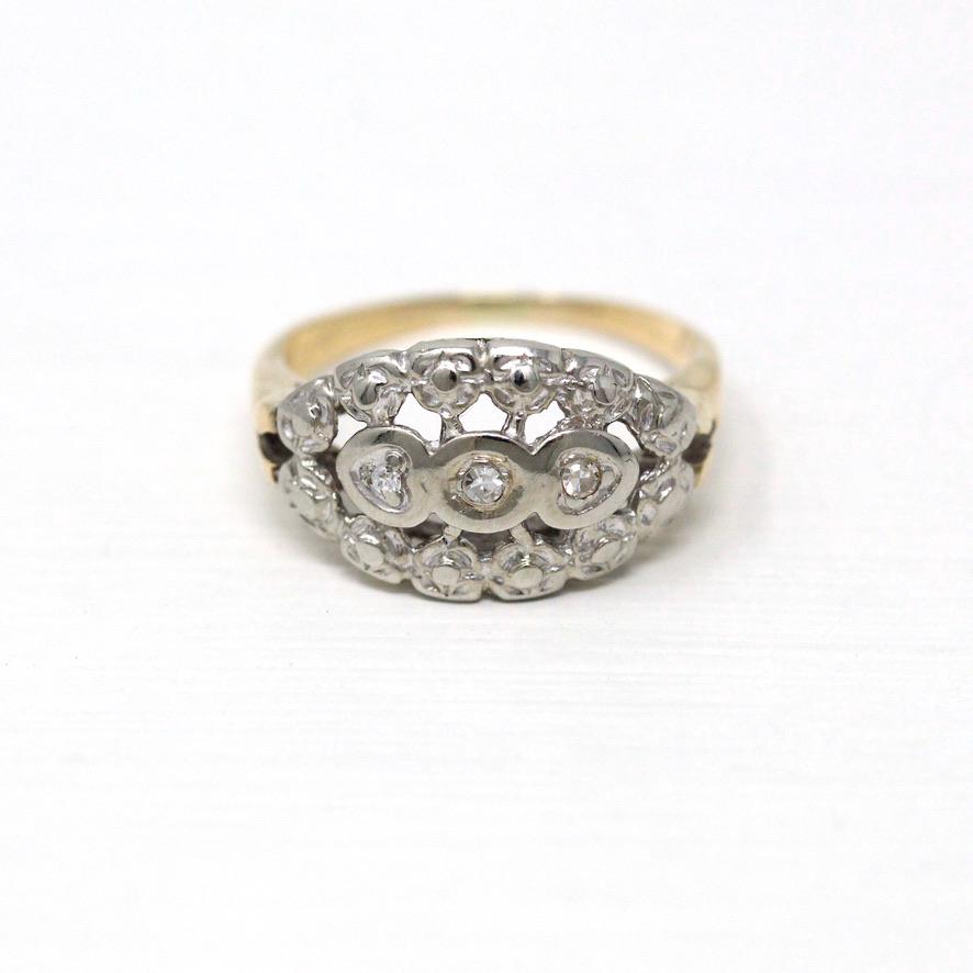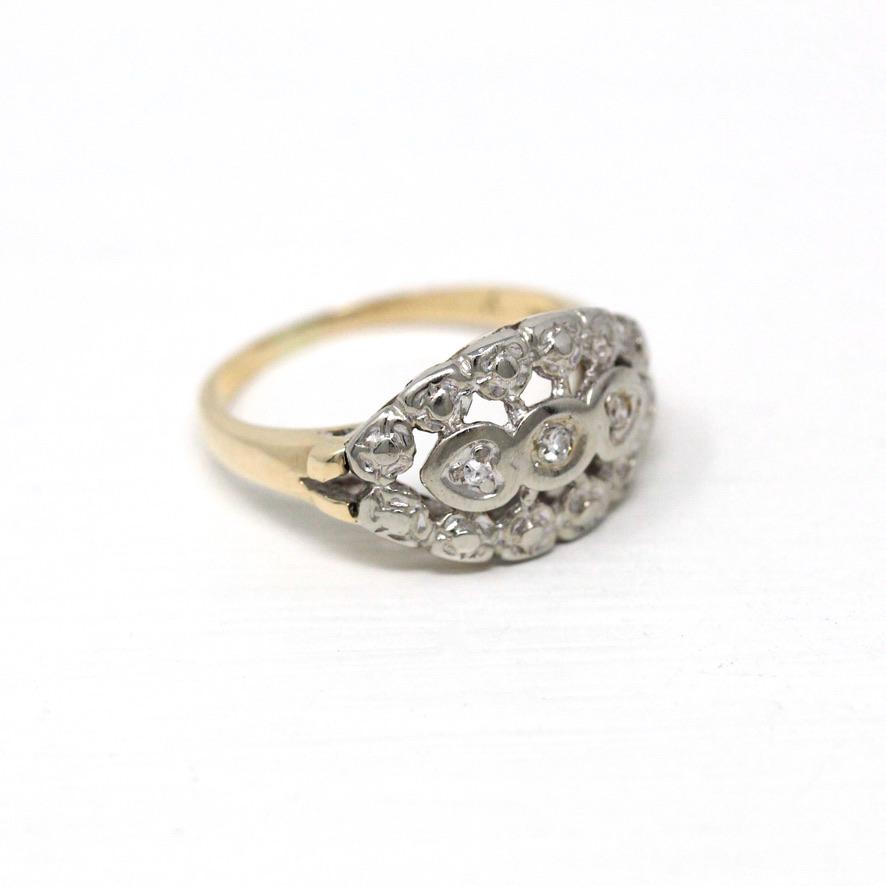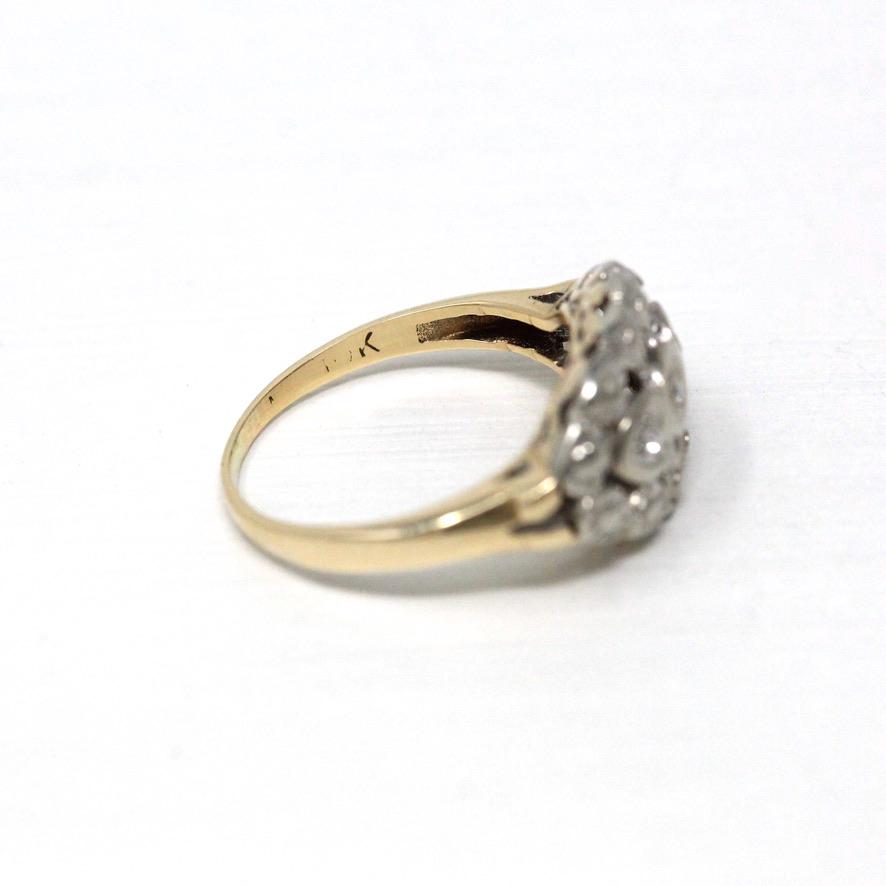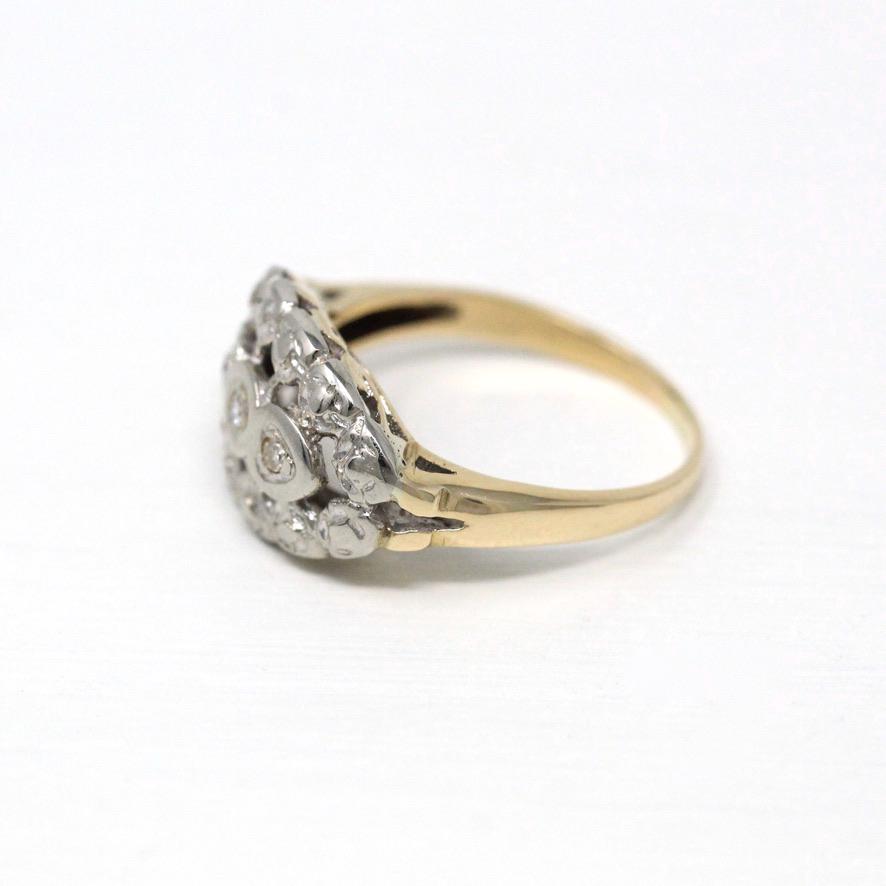 Vintage Nugget Ring - Estate 14k Yellow & White Gold .50 CTW Natural Diamond Band - Modern Size 7.5 Unisex Two Tone Textured Bridal Jewelry