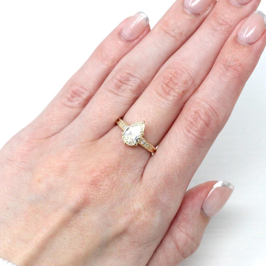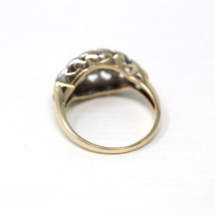 Vintage Cameo Ring - Retro 10k Yellow Gold Diamond Habillé Organic Oval Carved Shell - Circa 1940s Size 6 Woman Portrait Fine 40s Jewelry
