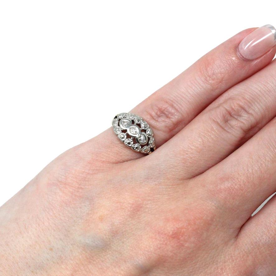 Onyx Filigree Ring - Art Deco Era 14k White Gold Natural .02 CT Diamond Accent - Vintage Circa 1930s Size 7 1/2 Black Chalcedony Jewelry