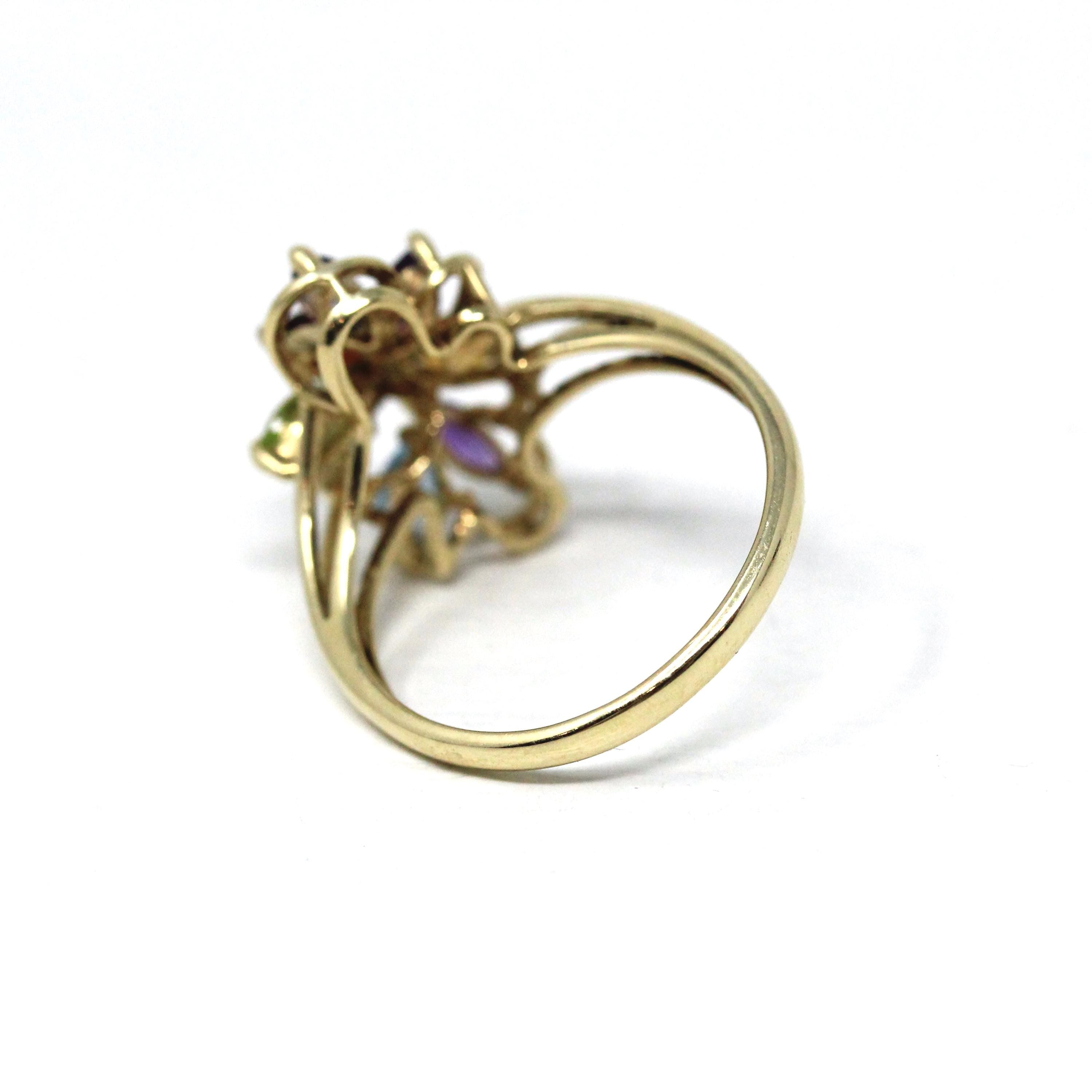 Rainbow Gemstone Ring - Modern 9k Yellow Gold Multi Color Gemstones - Hallmarked 2001 Size 8 1/4 Fine Floral Statement Birmingham Jewelry