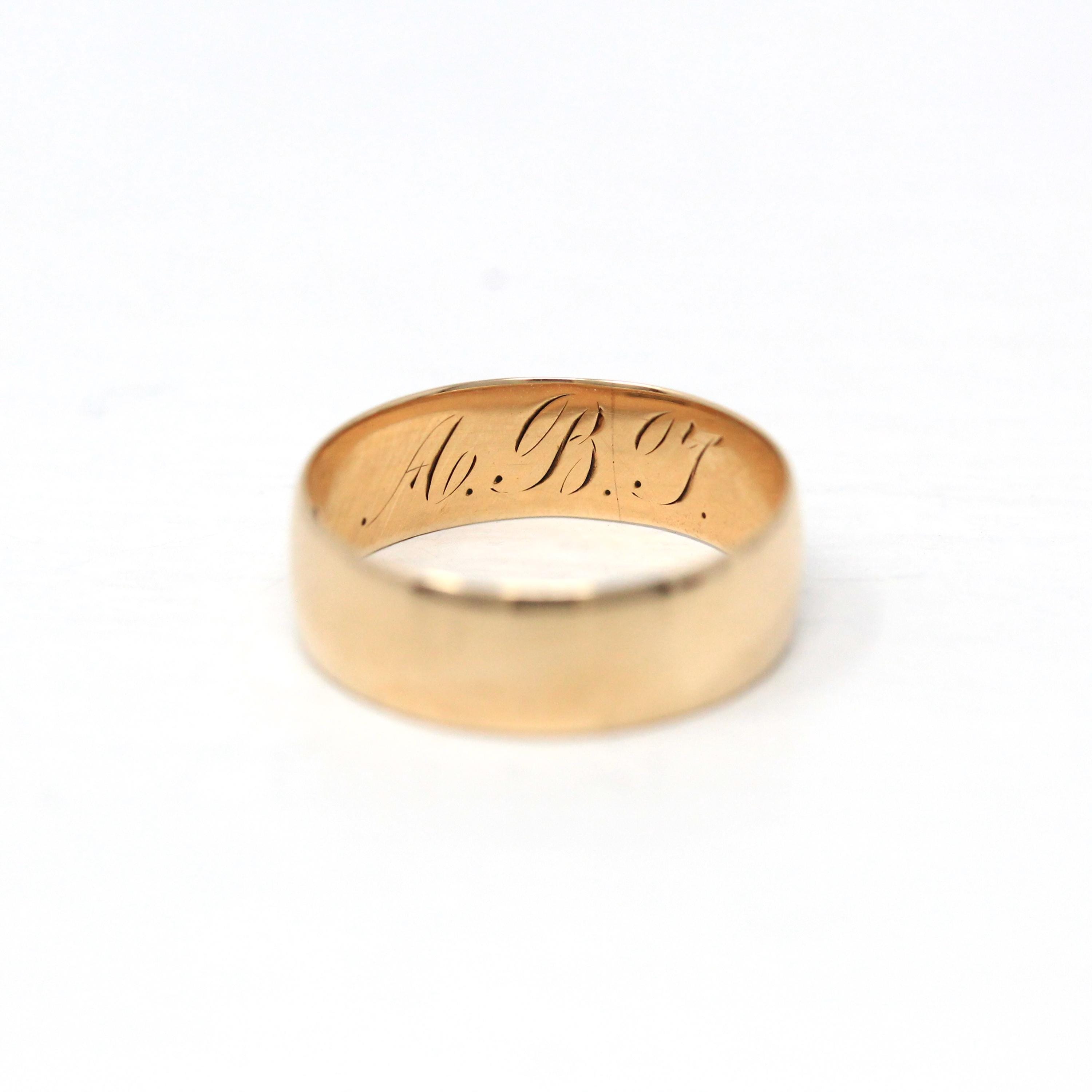 Antique Buckle Ring - Victorian 14k Rose Gold Belt Band Letters "ANF" Initials - Vintage Circa 1890s Era Size 5 1/2 Statement Fine Jewelry