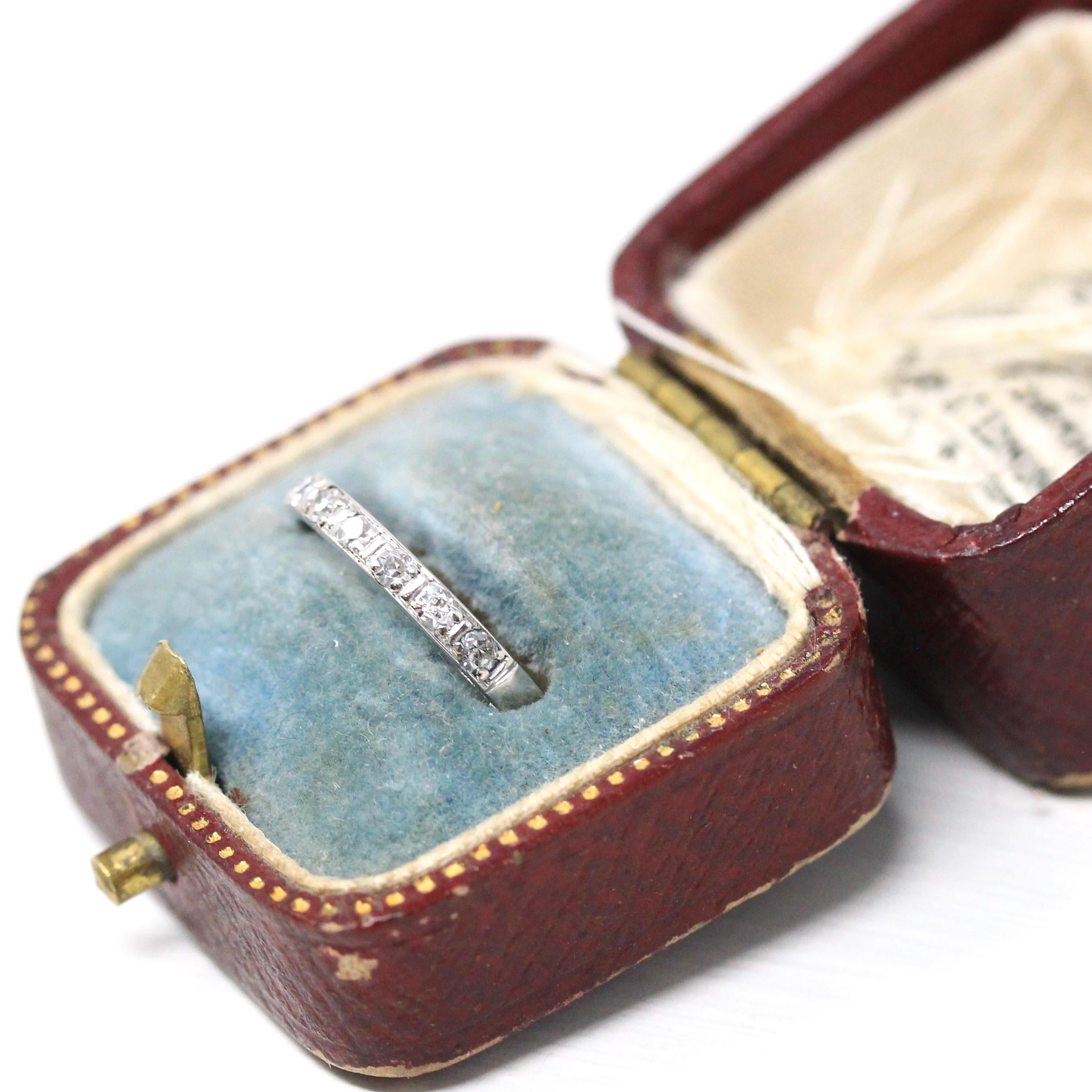 Art Deco Diamond Wedding Band - Vintage Platinum Natural .18 CTW Gemstones Ring - Circa 1930s Era Size 5 Half Eternity Fine Bridal Jewelry