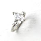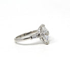 Diamond Engagement Ring - Vintage Platinum Genuine Marquise & Baguette Diamond - Circa 50s Size 6 1/4 Three Stone Fine Bridal Report Jewelry