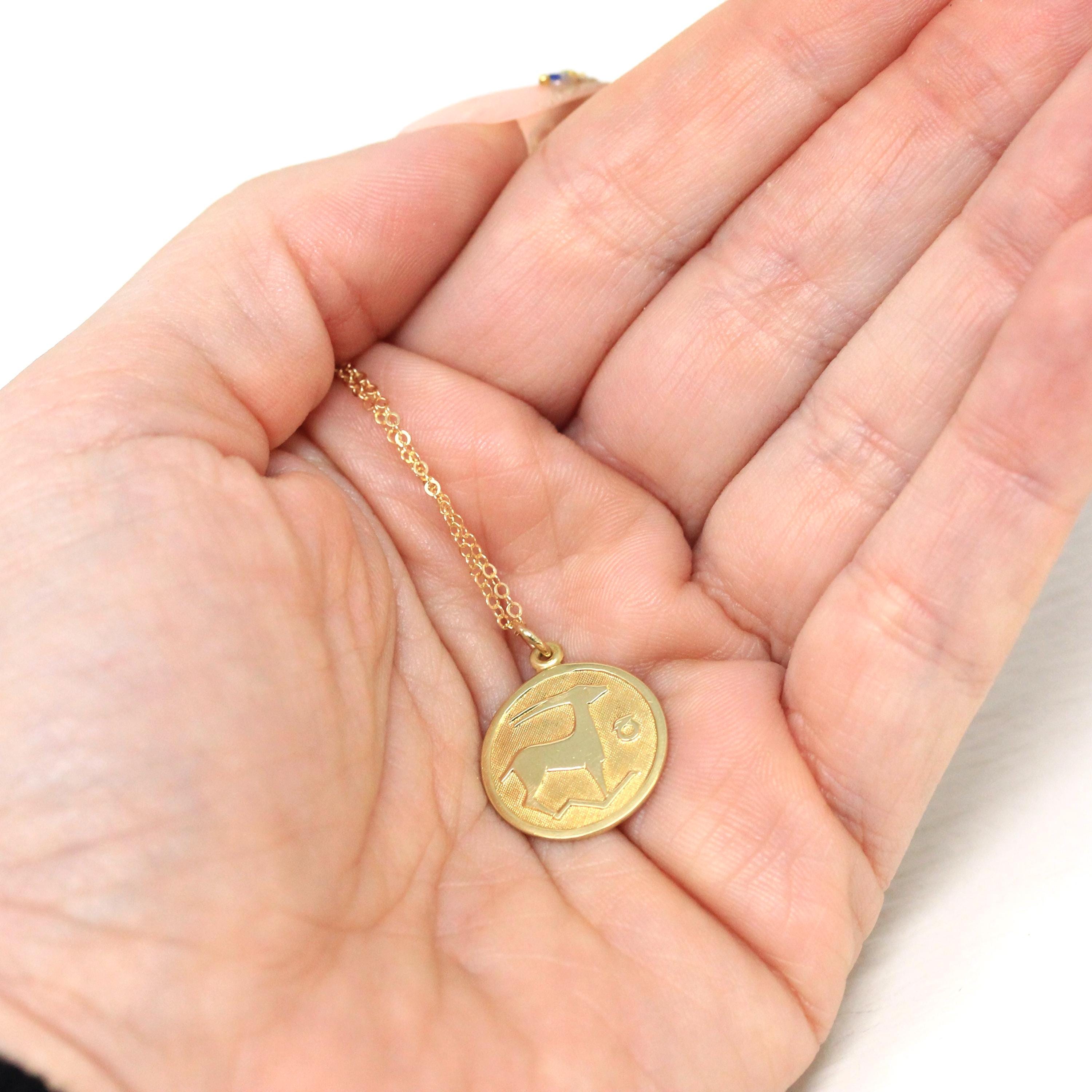 Estate Capricorn Charm - Modern 14k Yellow Gold Sea Goat Astrological Sign Necklace - Circa 2000's Zodiac Celestial Earth Element Jewelry