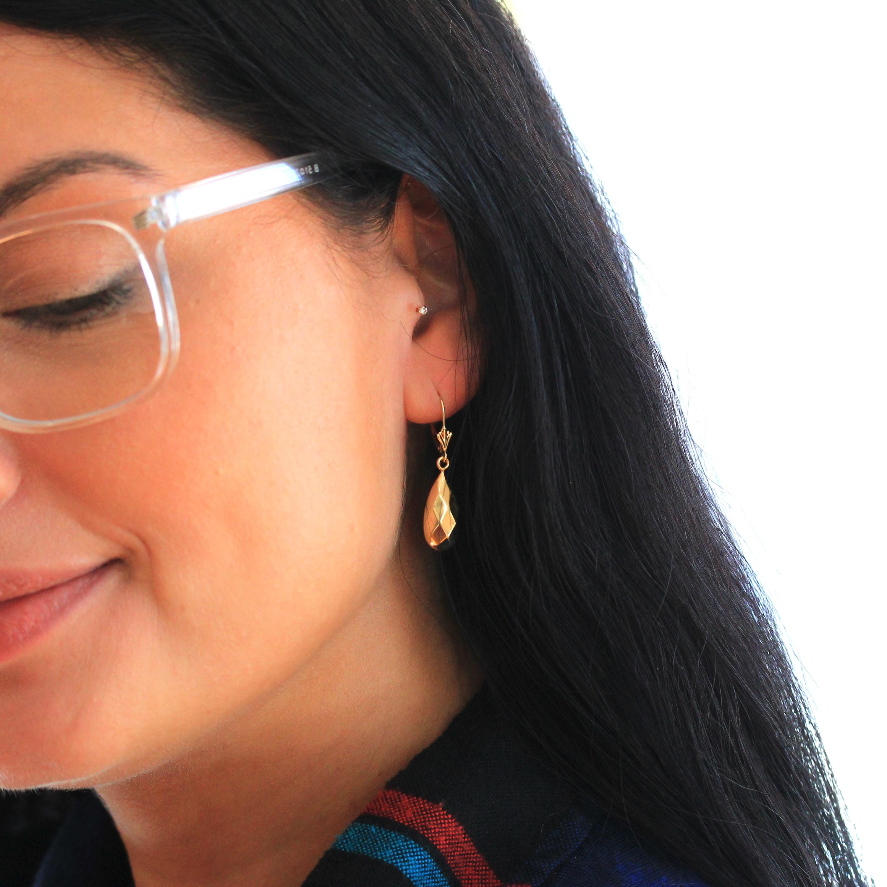 Faceted Teardrop Earrings - Modern 14k Yellow Gold Geometric Design Lever Back - Circa 1990's Era New Old Stock Fine Michael Anthony Jewelry