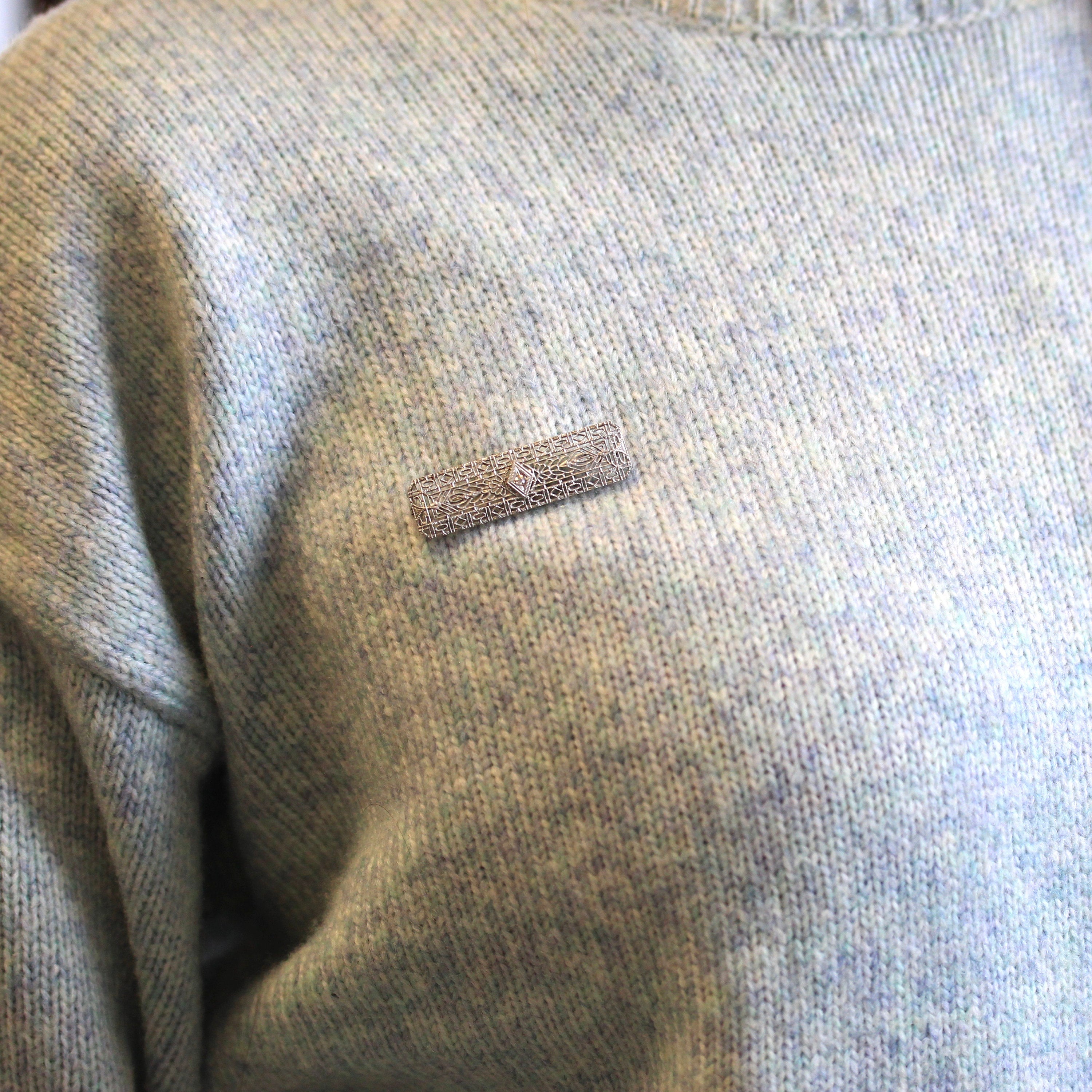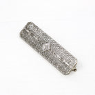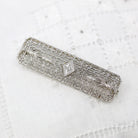 Venta - Broche Art Déco - Filigrana antigua de oro blanco de 14 k Genuino .02 CT Antiguo Pin de diamante europeo - Circa 1920s Era Joyería de accesorios de moda