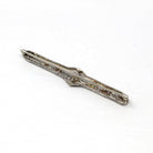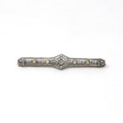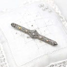Vintage Opal Brooch - Art Deco 14k White Gold Genuine Gem Diamond Long Pin - Circa 1930s Era Filigree Open Metal Statement Fine 30s Jewelry