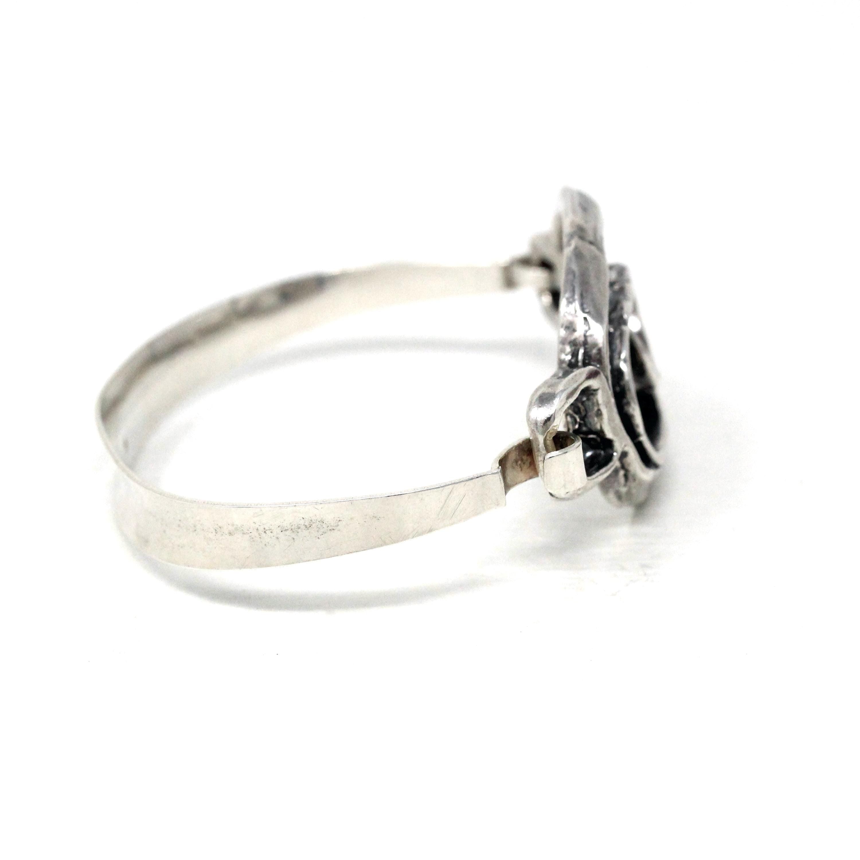 Vintage Swirl Bangle Bracelet - Retro Sterling Silver Organic Shape Funky Clasp Statement - Circa 1970s Era Fashion Accessory 70s Jewelry
