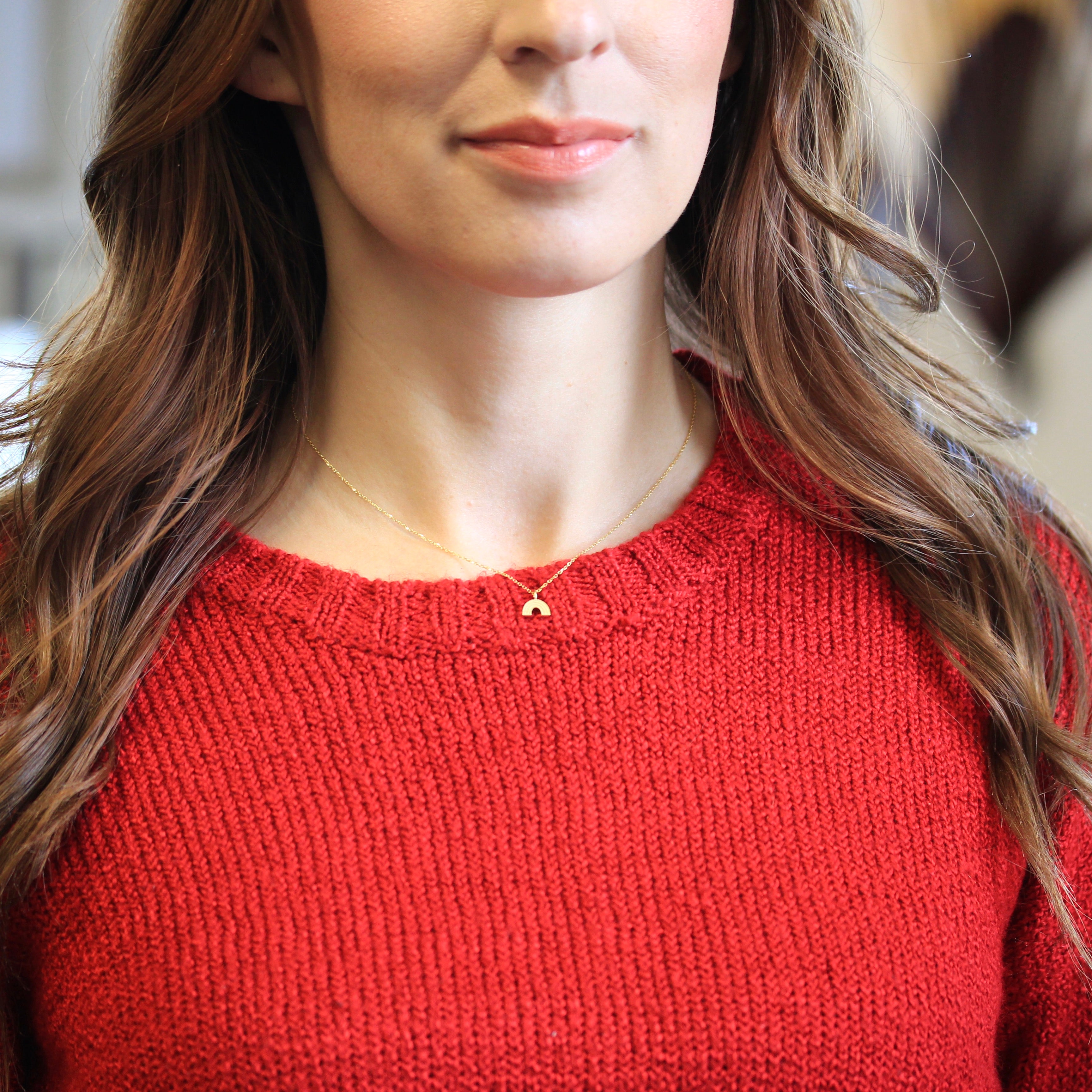 Modern Rainbow Charm - Handcrafted Designer 14k Gold Dainty Fine Pendant Necklace