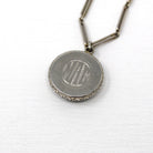 Antique Photo Fob - Art Deco Era 14k White Gold Initials "MAG" Photograph Keepsake - Circa 1920s Choker Necklace Watch Chain Fine Jewelry