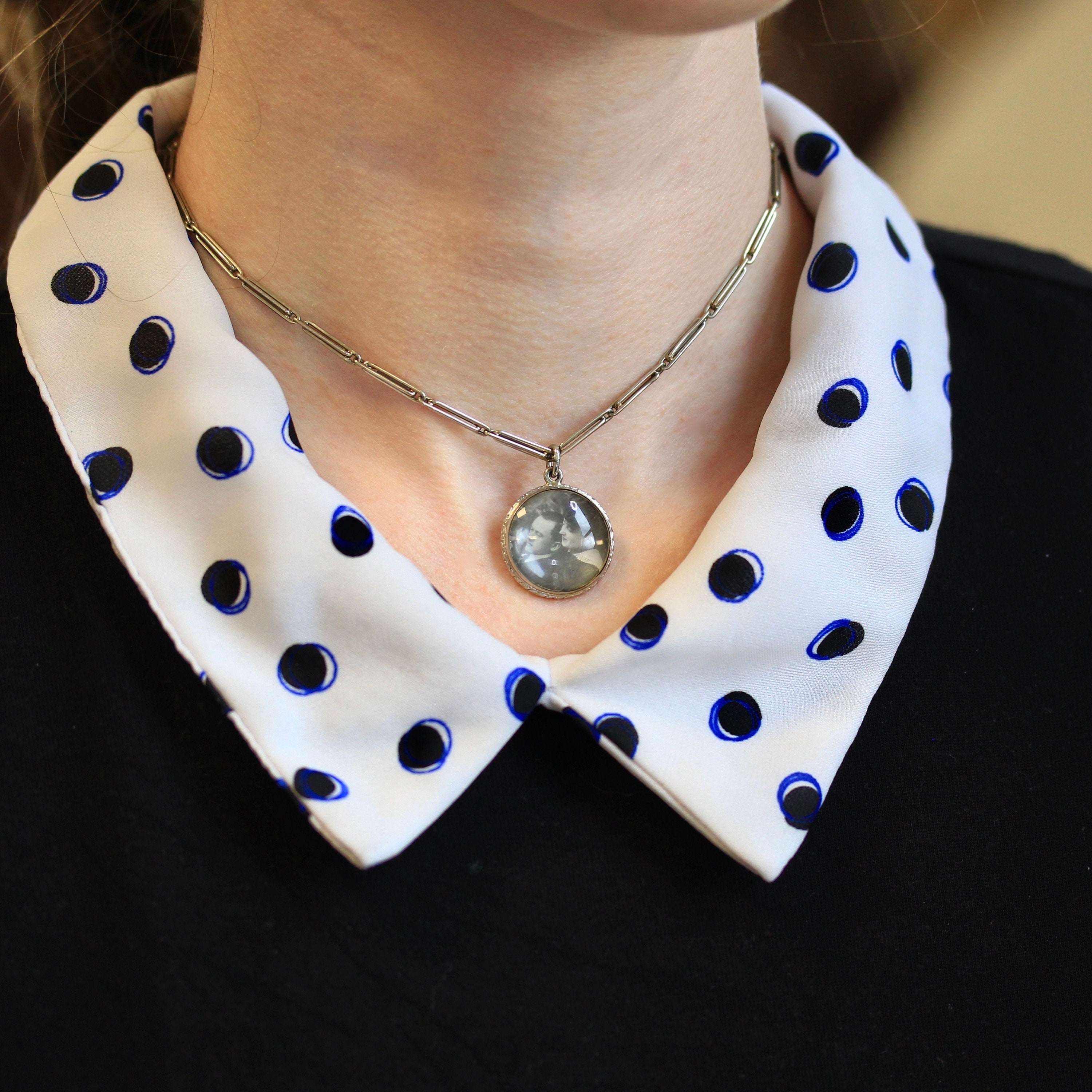 CONDITION - Good antique condition. White gold metal has been professionally polished & cleaned. Age appropriate patina & wear remains. Glass photo cover is in nice shape with very little wear. Original photograph has been very well preserved. Amazing antique photo fob necklace!