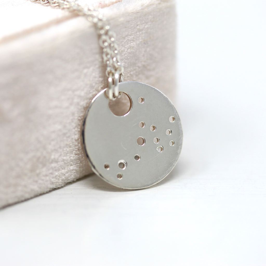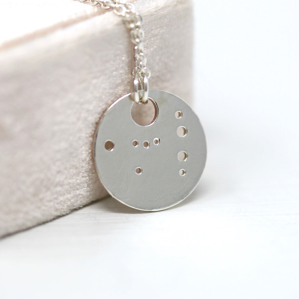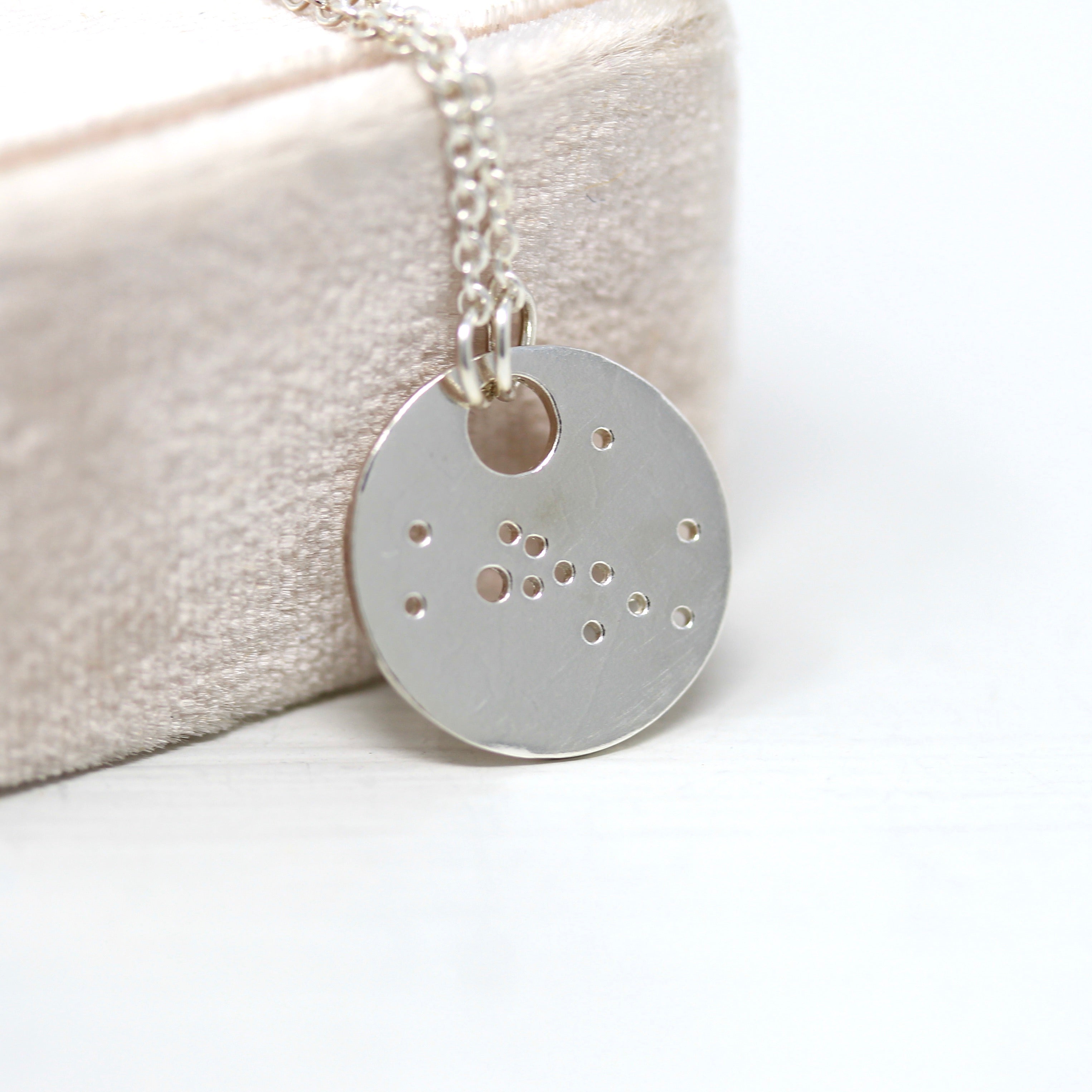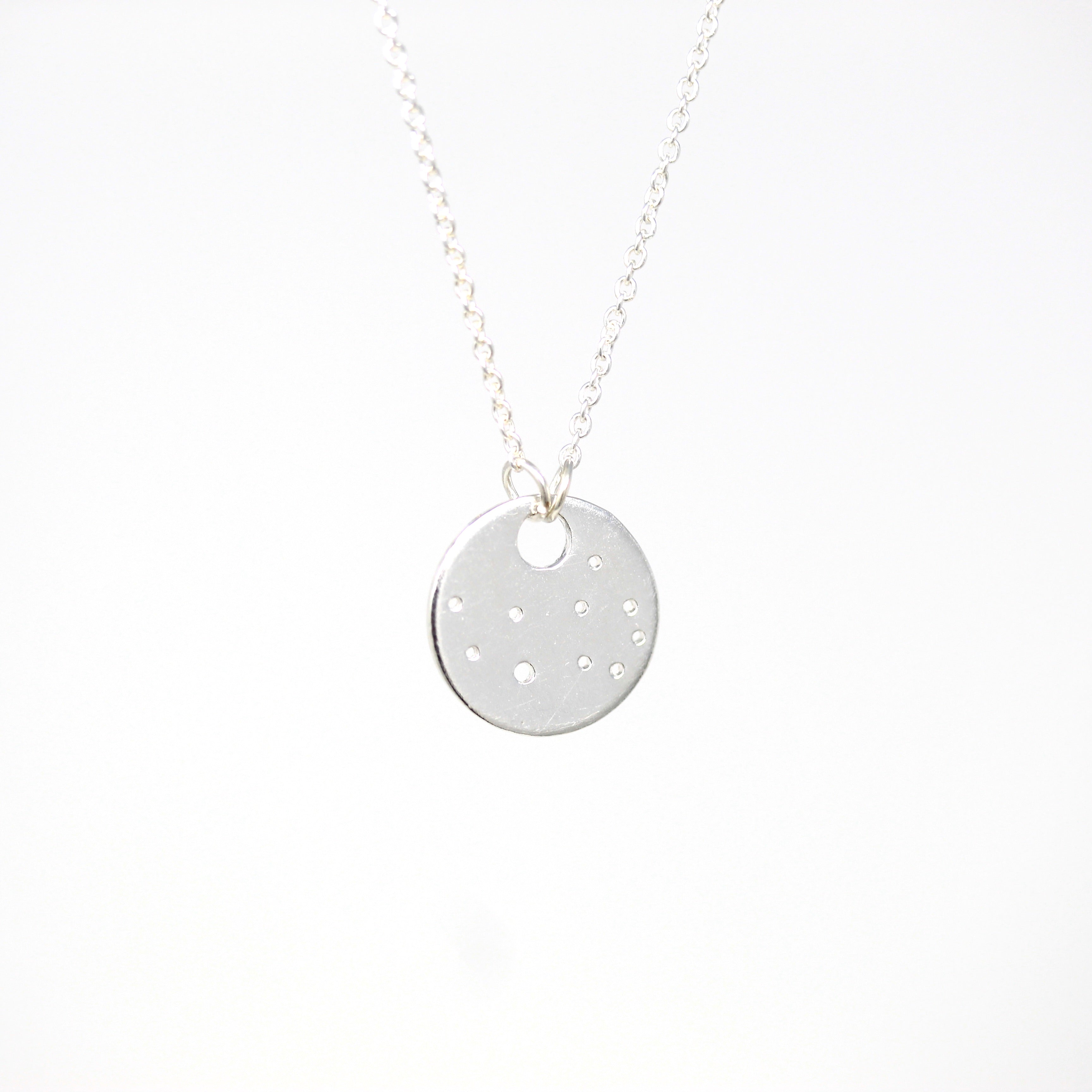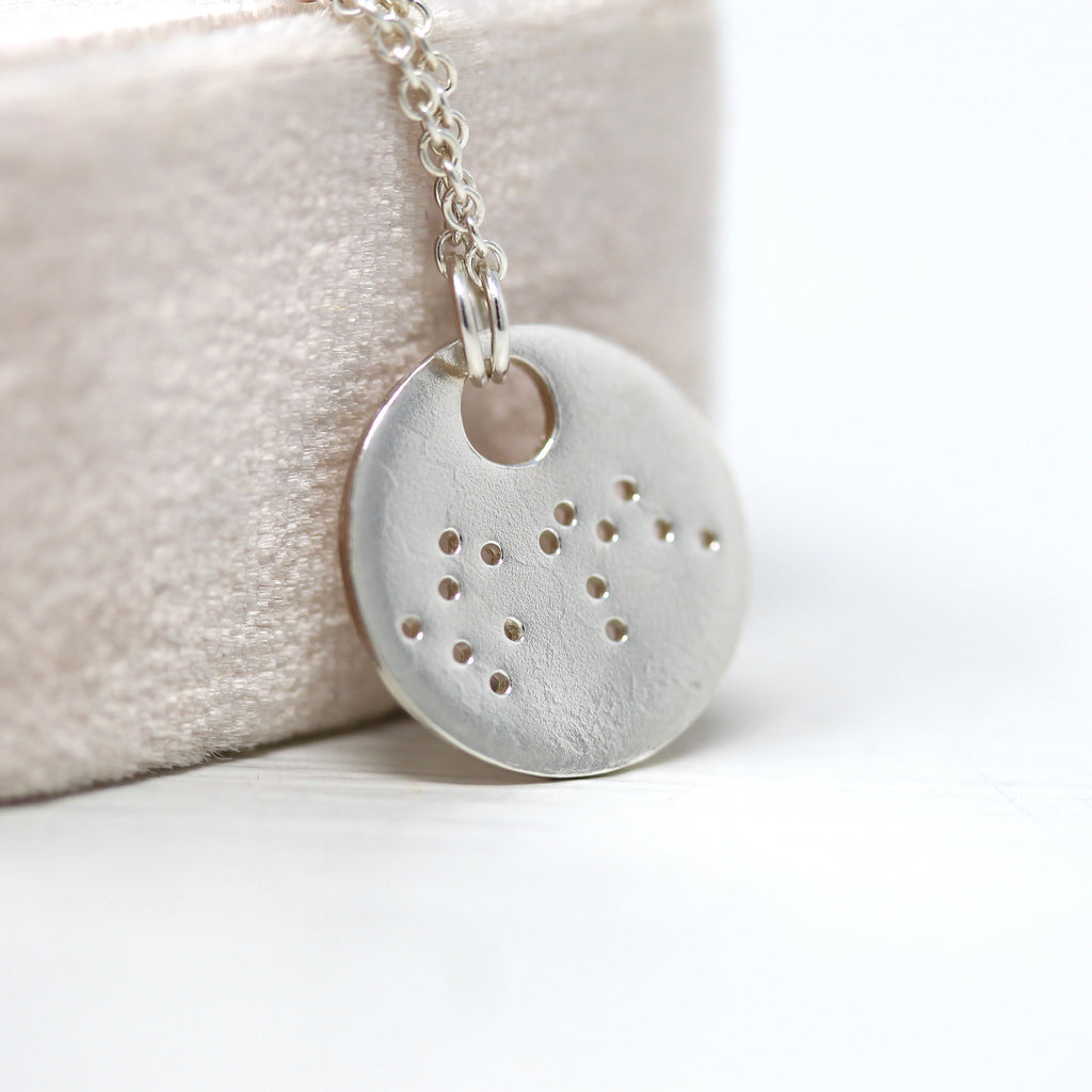 Zodiac Charm Necklace - Modern Handcrafted Designer Sterling Silver Pendant - Celestial Constellation Dainty Jewelry