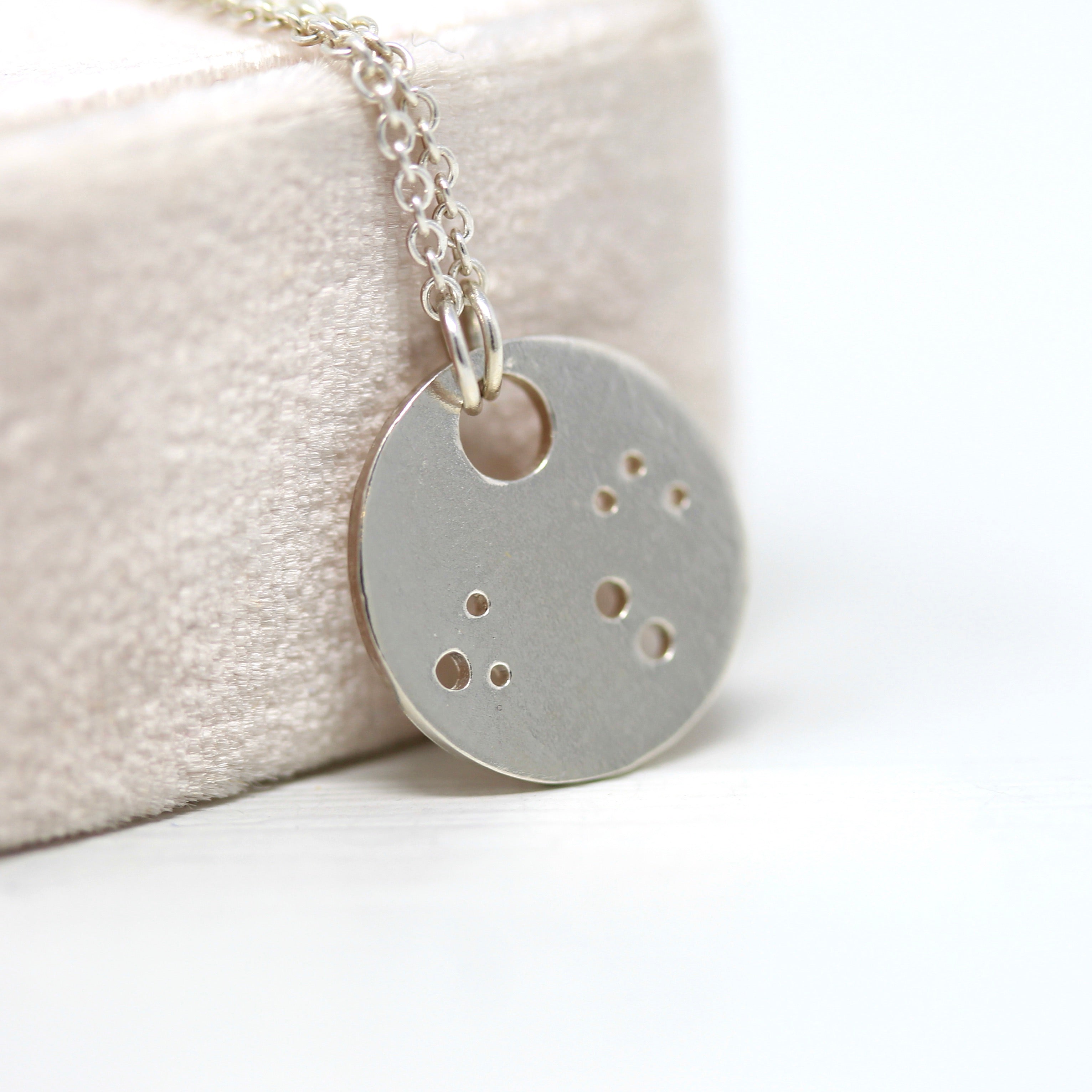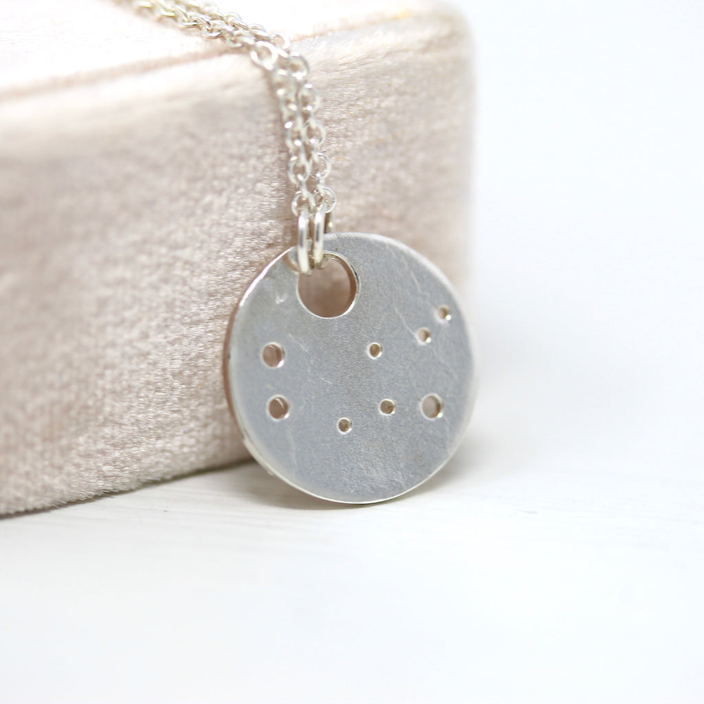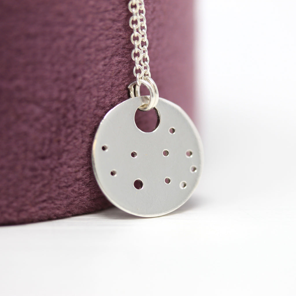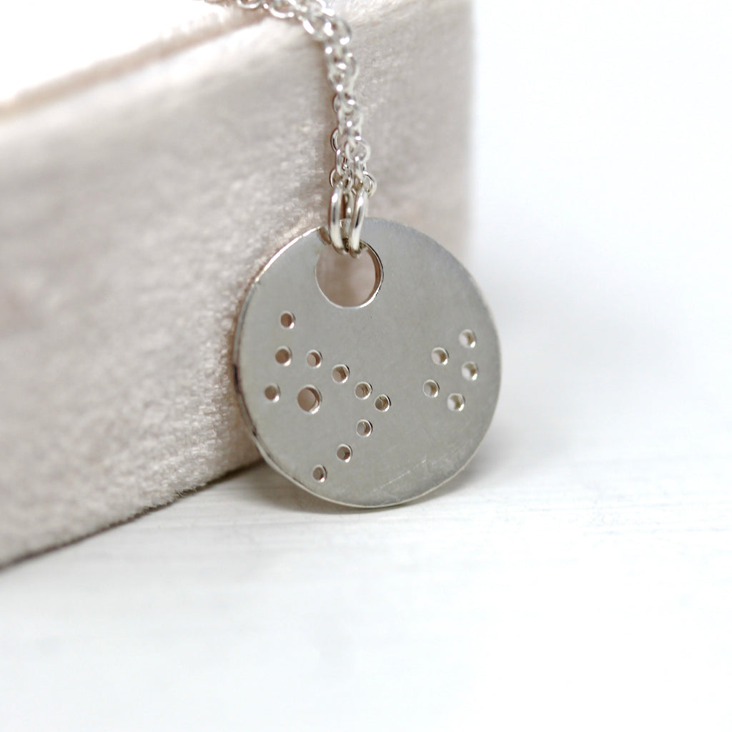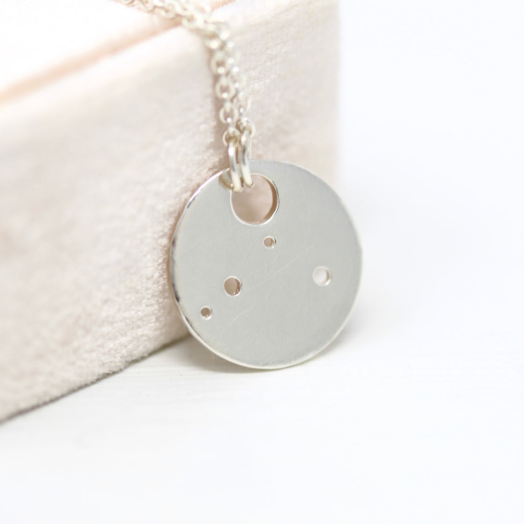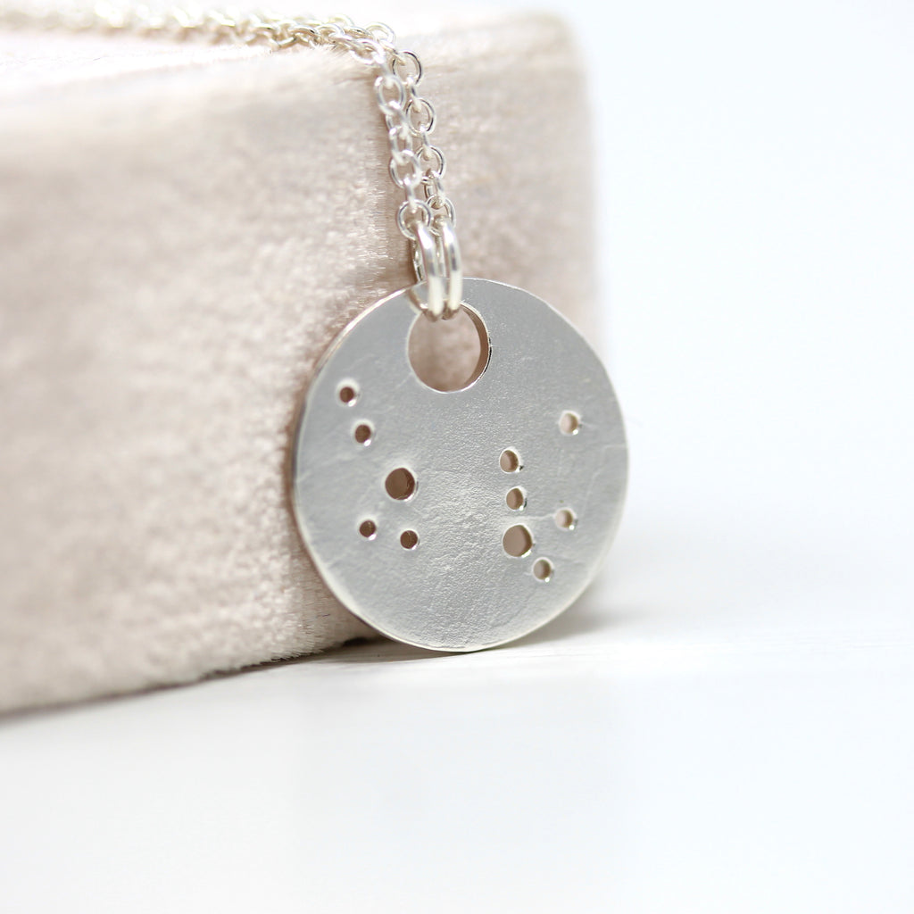 Zodiac Charm Necklace - Modern Handcrafted Designer Sterling Silver Pendant - Celestial Constellation Dainty Jewelry