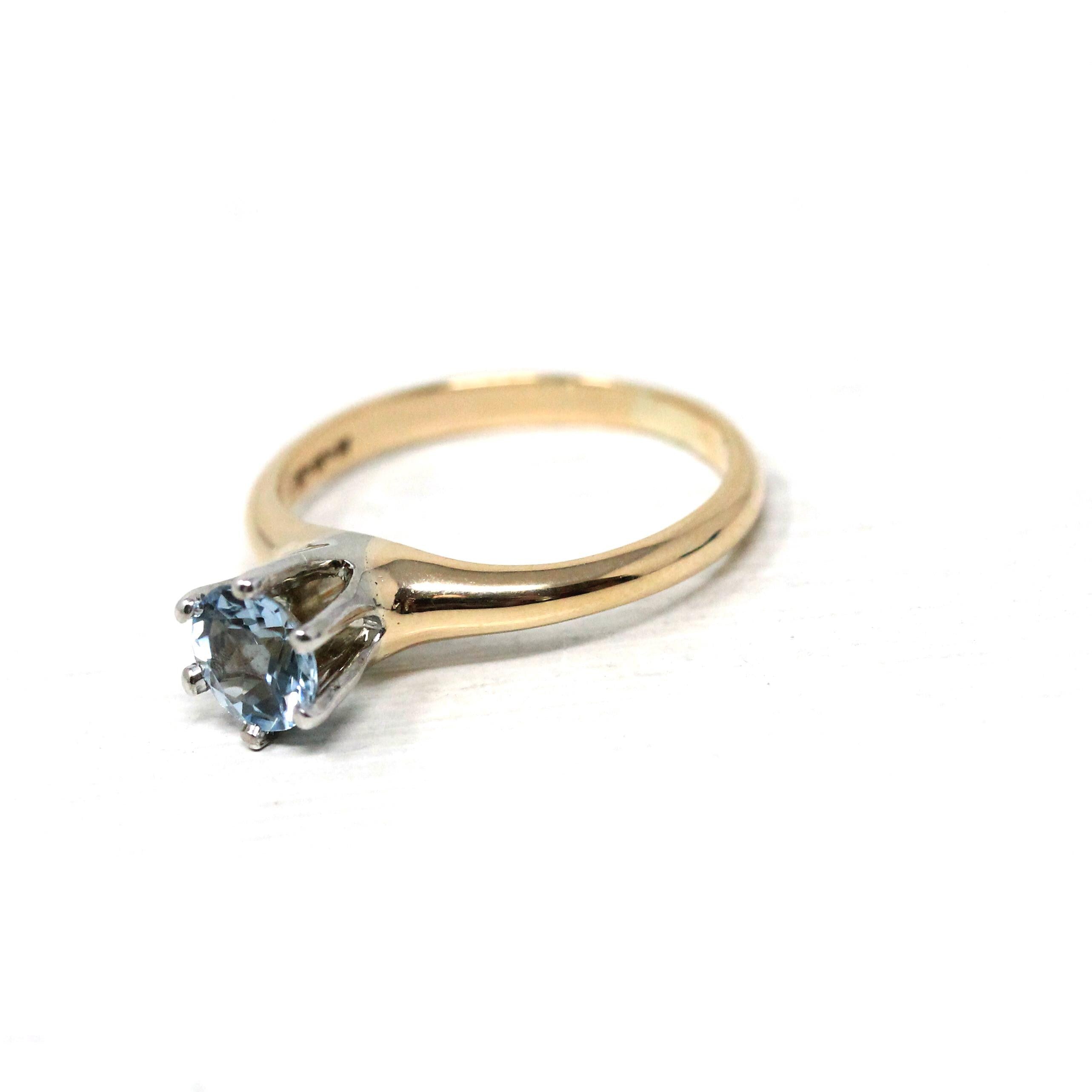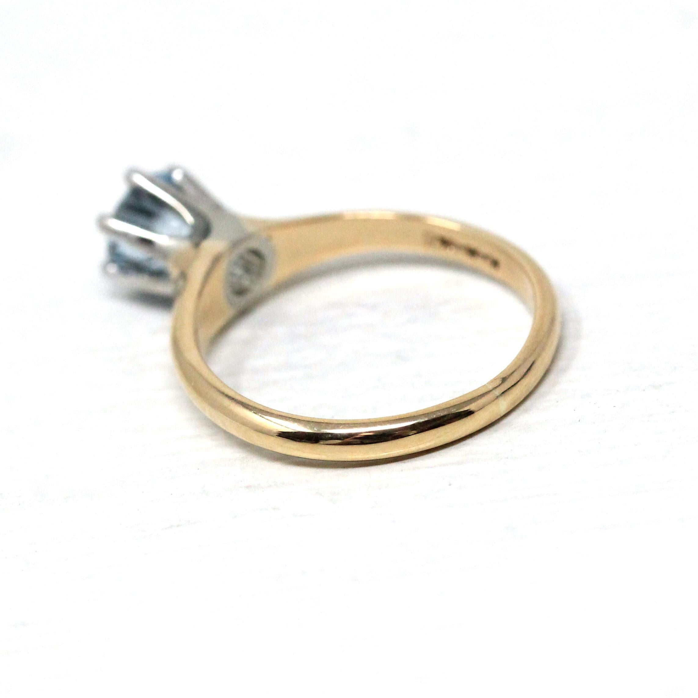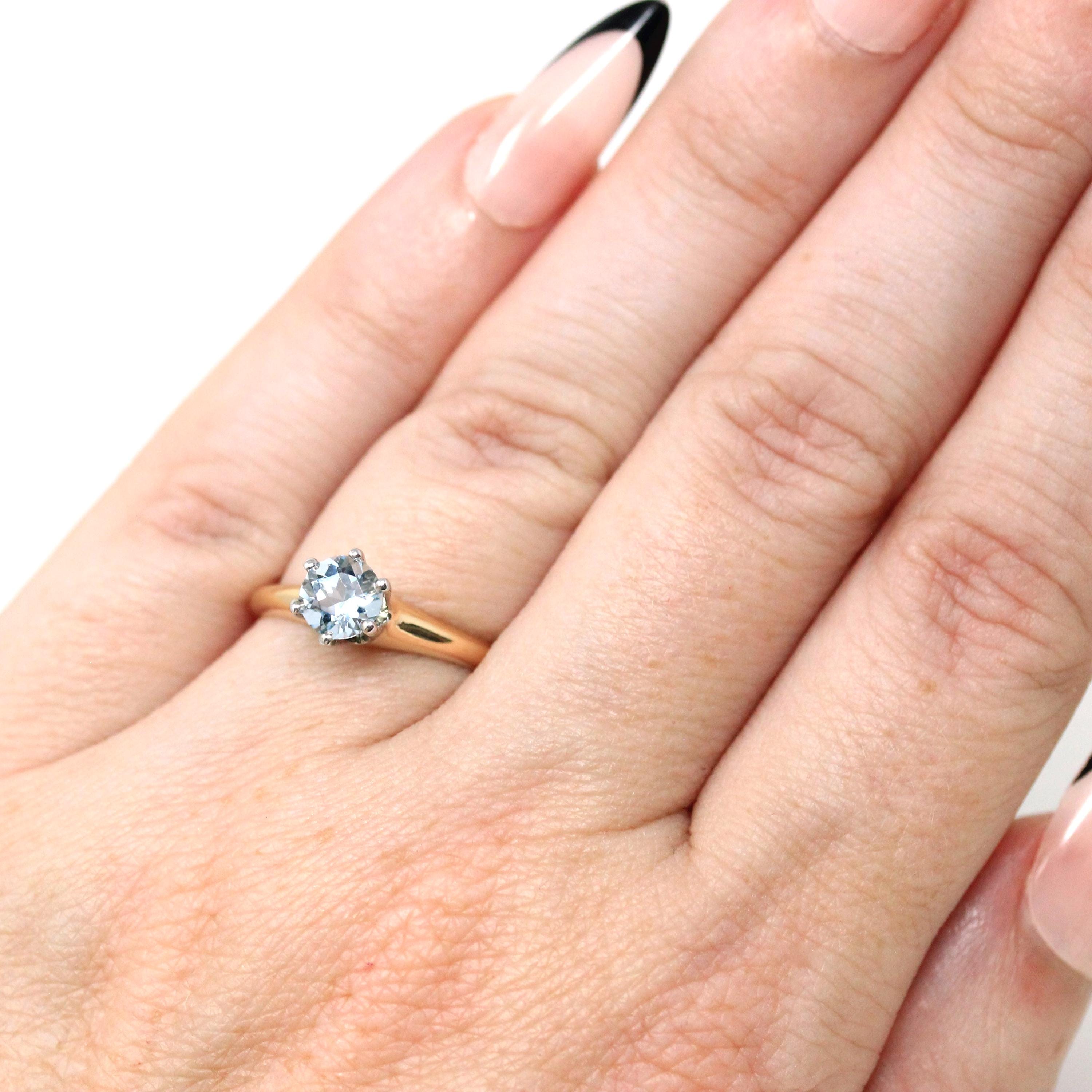 Aquamarine Solitaire Ring - Vintage 10k Yellow & White Gold Round Faceted Blue Stone - Circa 1910s Size 5 1/2 Fine March Birthstone Jewelry