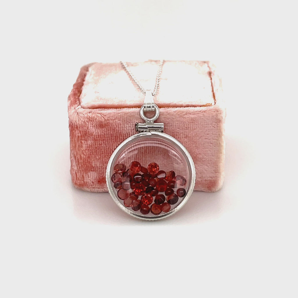 Garnet Shaker Locket - Handcrafted Sterling Silver Genuine Gems Clear Pendant - New 2.5 CTW Red Round Gemstones January Birthstone Jewelry