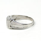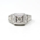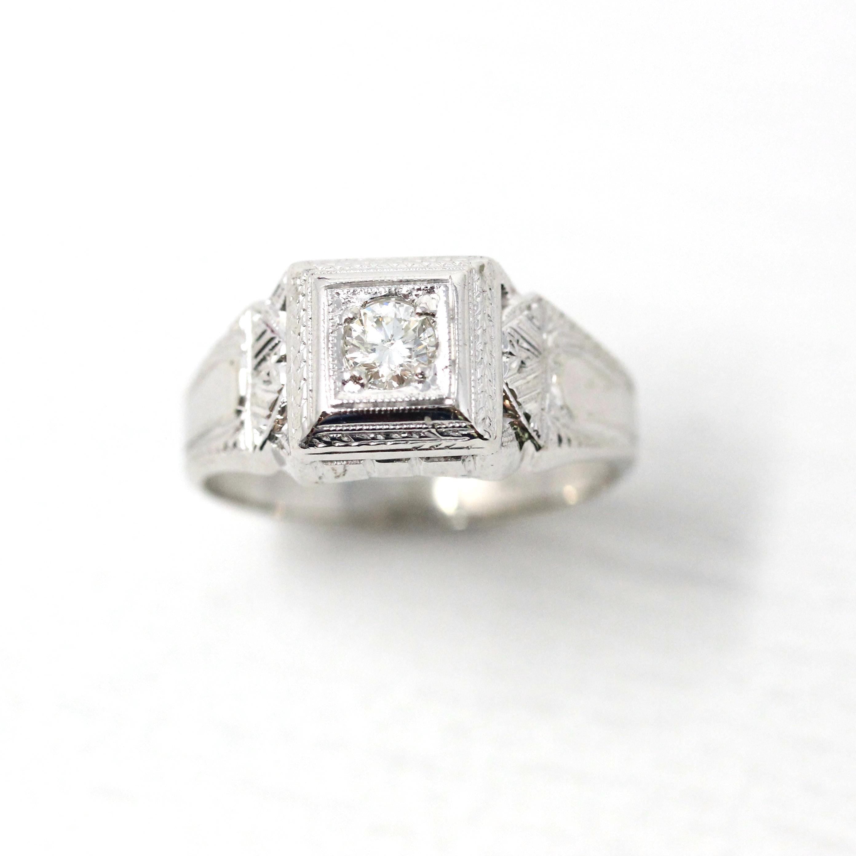 Genuine Diamond Ring - Art Deco 14k White Gold .25 CT Round Brilliant Cut - Vintage Circa 1930s Size 9 1/2 Unisex Engagement Fine Jewelry