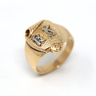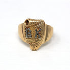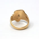 CONDITION - Good vintage condition. Yellow gold metal has been professionally polished & cleaned. Some smoothing to designs. Amazing vintage ring!