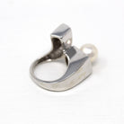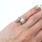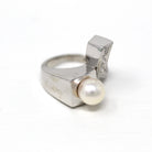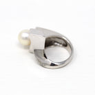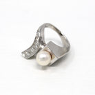 Mid Century Ring - Vintage 14k White Gold Cultured Pearl Genuine .12 CTW Diamond - 1950s Era Size 2 June Birthstone Modernist Fine Jewelry
