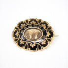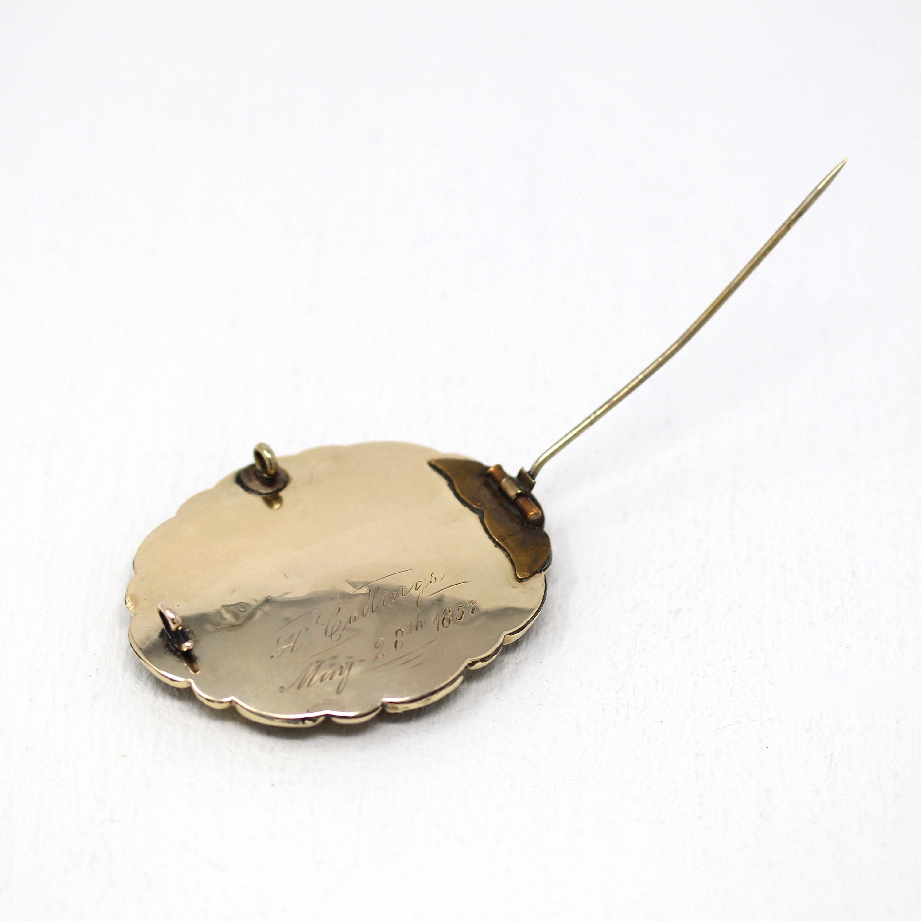 Victorian Mourning Brooch - Antique Gold Shell Enamel "In Memory Of" Pin - Dated May 28th 1857 H. Collings Hair Art Memorial Style Jewelry
