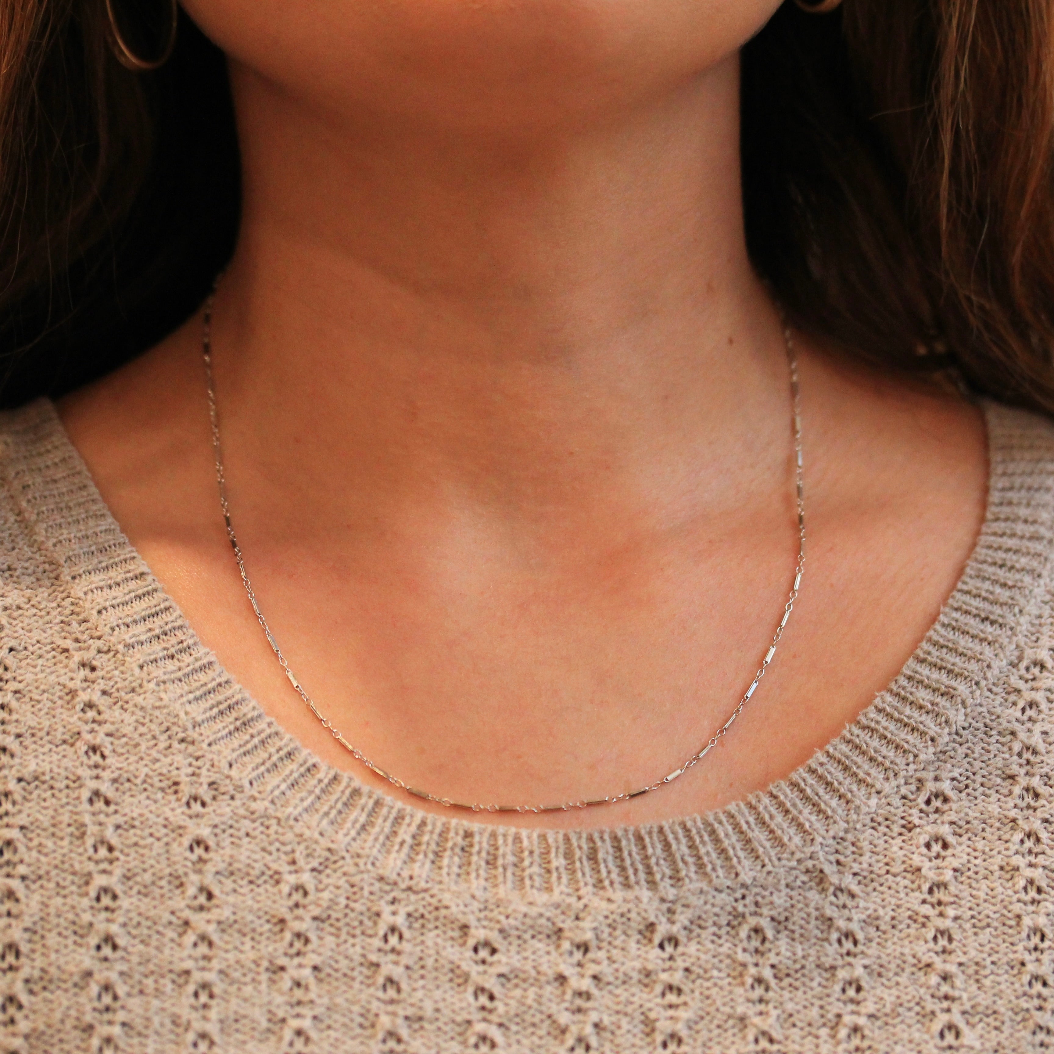 Vintage Chain Necklace - Art Deco 14k White Gold Fancy Decorative Paper Clip Link - Circa 1930s Era Fish Hook Clasp Dainty Accessory Jewelry