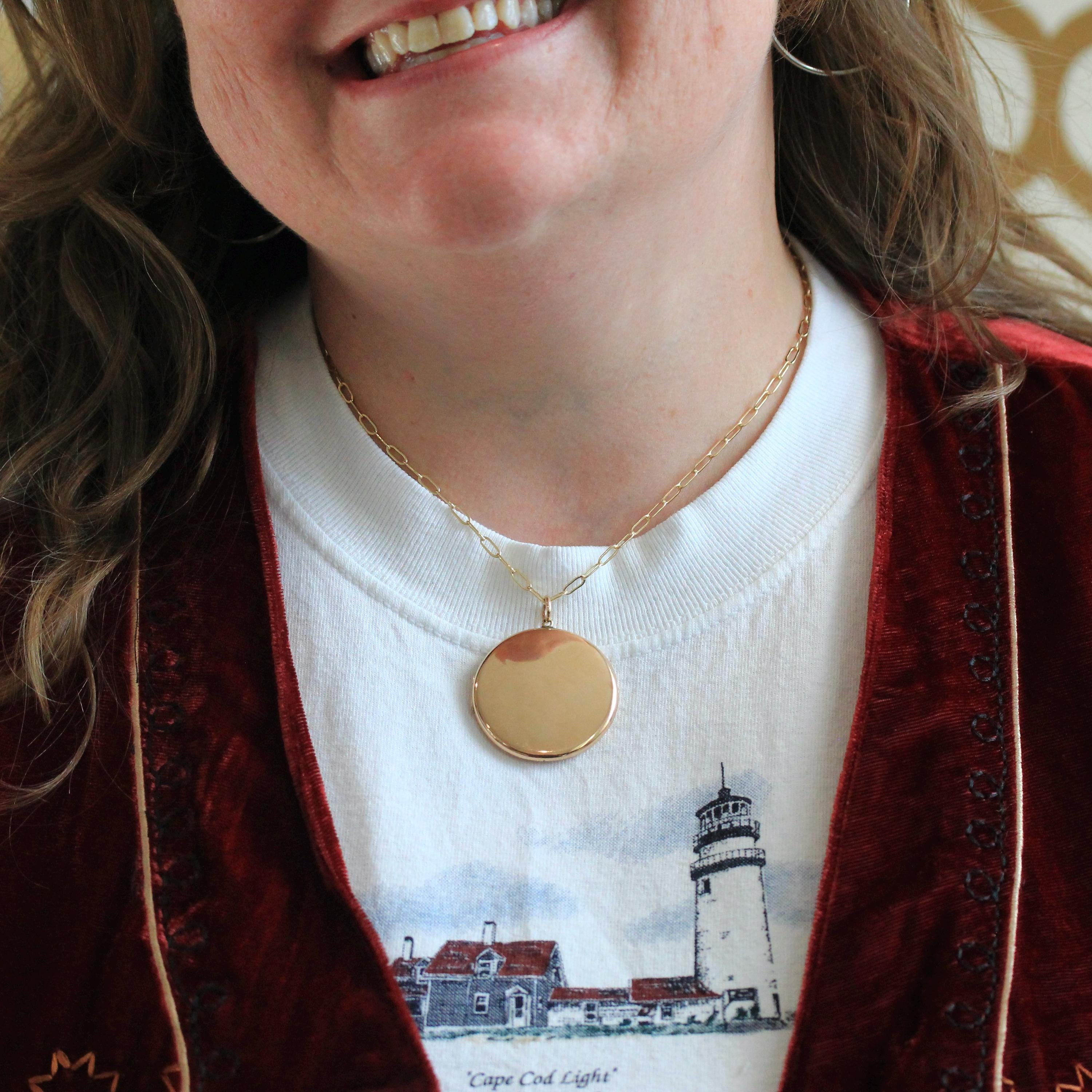 SIZE / MEASUREMENTS - Chain: 18 inches, Pendant (including bail): 1 7/8 x 1 1/2 inches, Locket Weight: 10.3 grams